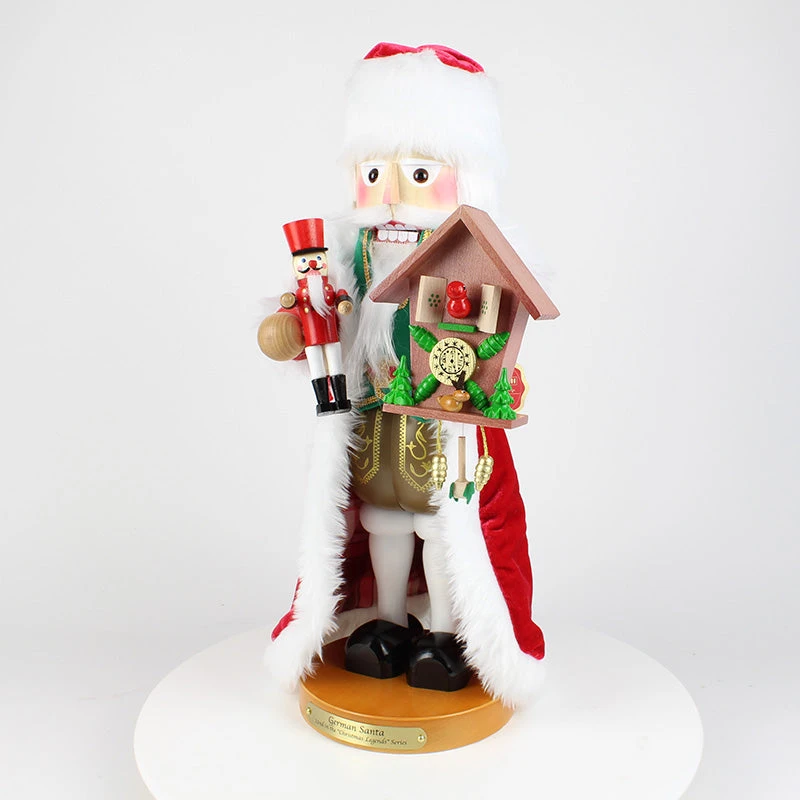 The Christmas Legends series is inspired by Santa Claus figures from around the world, each with his own distinct history and appearance. The 22nd nutcracker in this beloved series is German Santa. Standing at 17-inches tall, this Santa is wearing a festive German black forest red and white cape and hat. To complete the look, he is holding a tiny wooden nutcracker of his own and a wooden German cuckoo clock, both in festive shades of red, green and gold. Intricately crafted in Germany with the finest attention to detail.