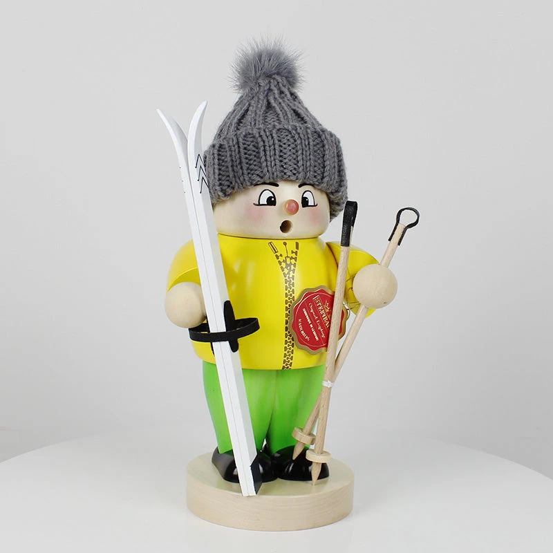 Infuse the scent of Christmas into your home with the help of our Big Smoker Ski Boy. His stylish wool hat keeps him warm and he wears a bright yellow jacket, so you can’t miss him when he is dashing down the slopes. With his ski and ski sticks at the ready, he is surely thinking about his next fun trip down the mountain.