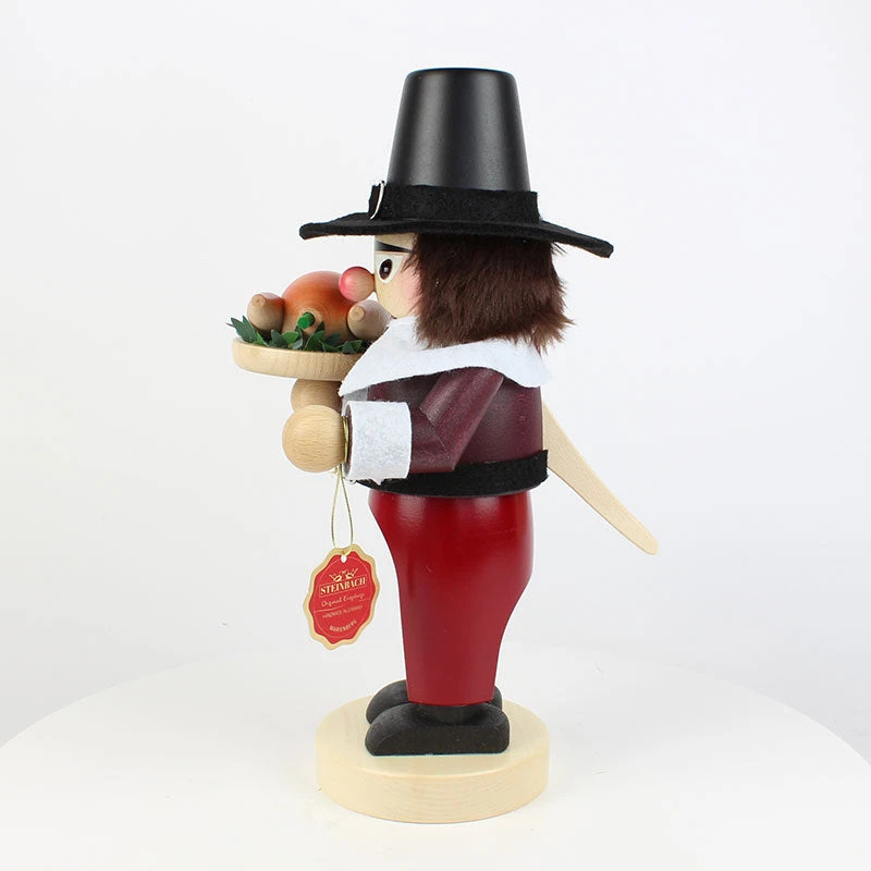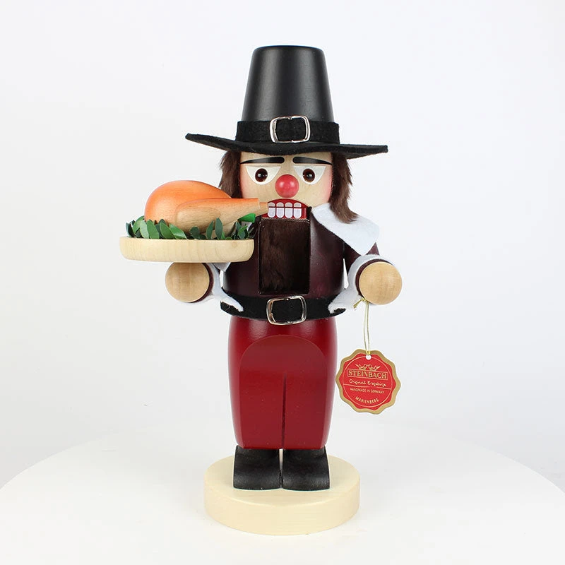 As you place this nutcracker in your home, imagine the first Thanksgiving, where Pilgrims and Native Americans gathered to share the fruits of their labor and give thanks for their survival in a harsh new land. This scene of unity and gratitude is beautifully captured in our Chubby Pilgrim, who not only brings a turkey to the table but also carries with him the legacy of perseverance, community, and the simple joys of sharing a meal with loved ones.