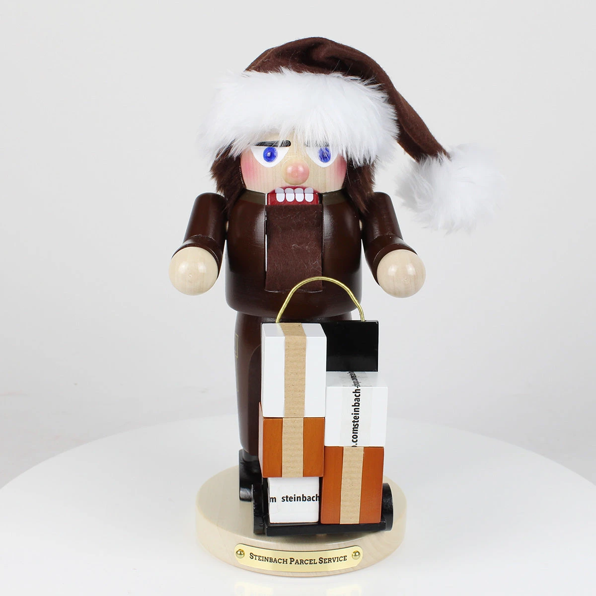 Meet our Chubby SPS Delivery Nutcracker, a delightful addition to the Steinbach collection. This charming nutcracker is dressed in a classic brown uniform, complete with a white and brown cap, perfectly embodying the iconic look. In his hands, he holds a stack of miniature packages, ready to be delivered, symbolizing the dedication of delivery personnel during the holiday season.