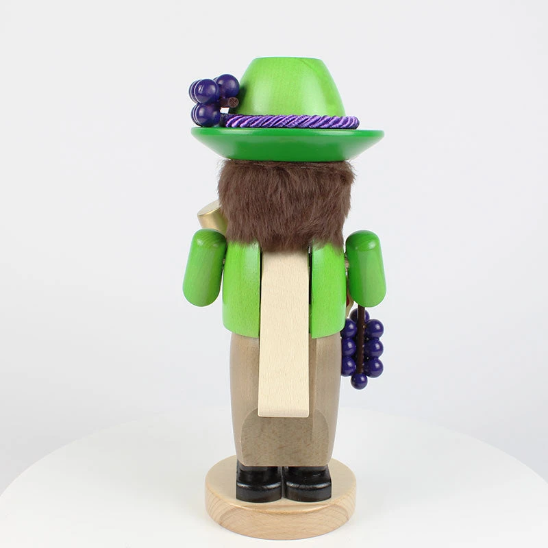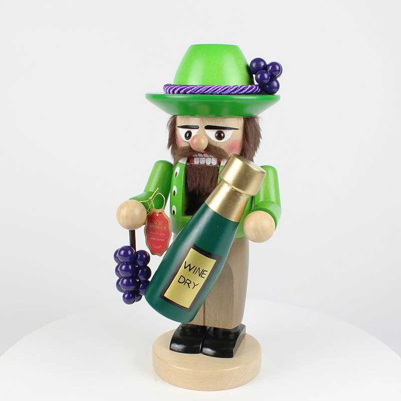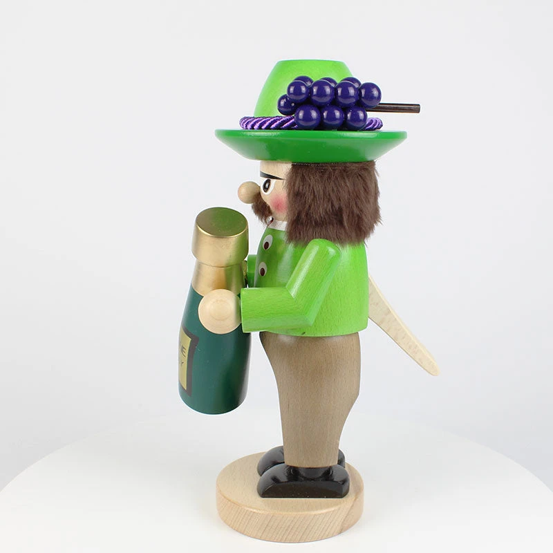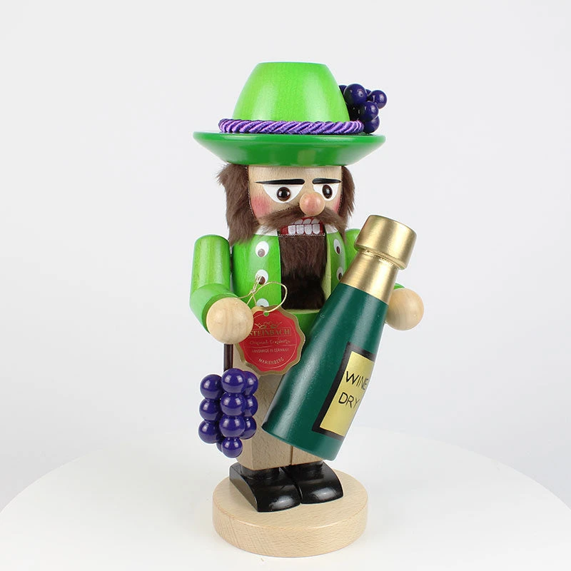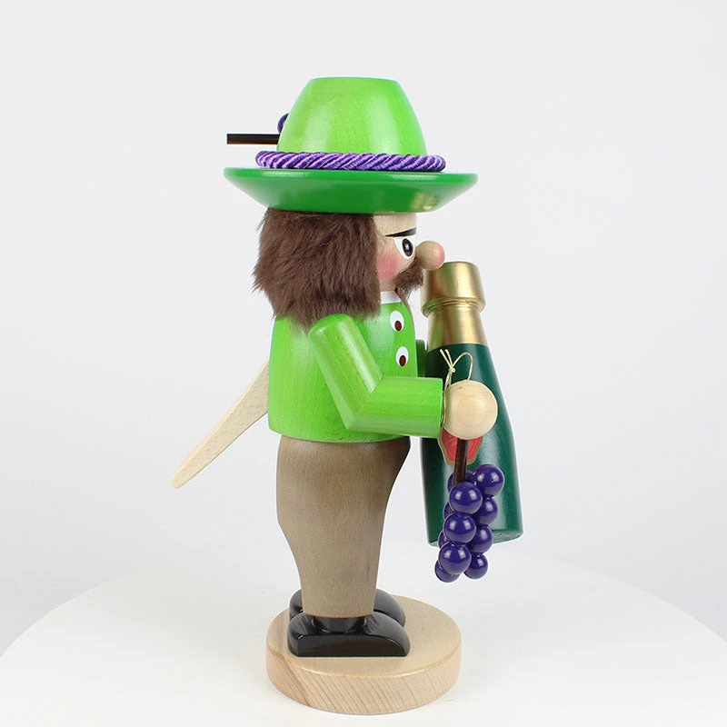Our Chubby Wineseller is a tasty wine connoisseur. In his hands he holds a wine bottle and a bunch of grapes. His headpiece graces grapes. A nutcracker true consumption, handmade and matured from the idea in the Erzgebirge by Steinbach.