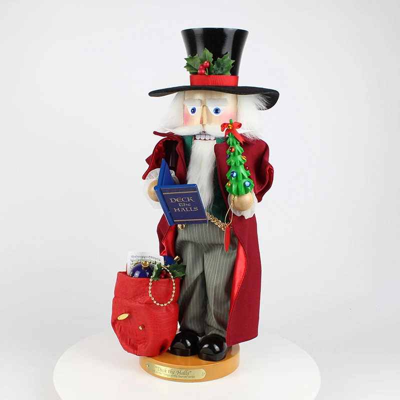 The Song of The Seasons Series features designs inspired by classic holiday songs. Each nutcracker plays the tune for which they are named! This 18.9 inch Deck The Halls musical nutcracker is the perfect addition to any Steinbach collection. While holding a miniature decorated Christmas tree and a song book, this nutcracker has a bag filled with decorated ornaments, holly and a music sheet.