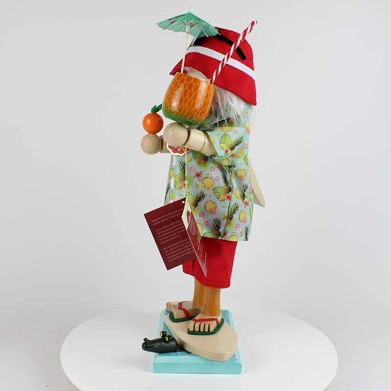 He is the SECOND nutcracker in our new “SANTA OF THE US” series. It is strictly limited to 2,000 pieces and impresses with its high-quality workmanship and carefully selected details, such as the beach accessories, the cocktail with umbrella, the Hawaiian shirt or the surfboard on which our Florida Santa rides the next waves.