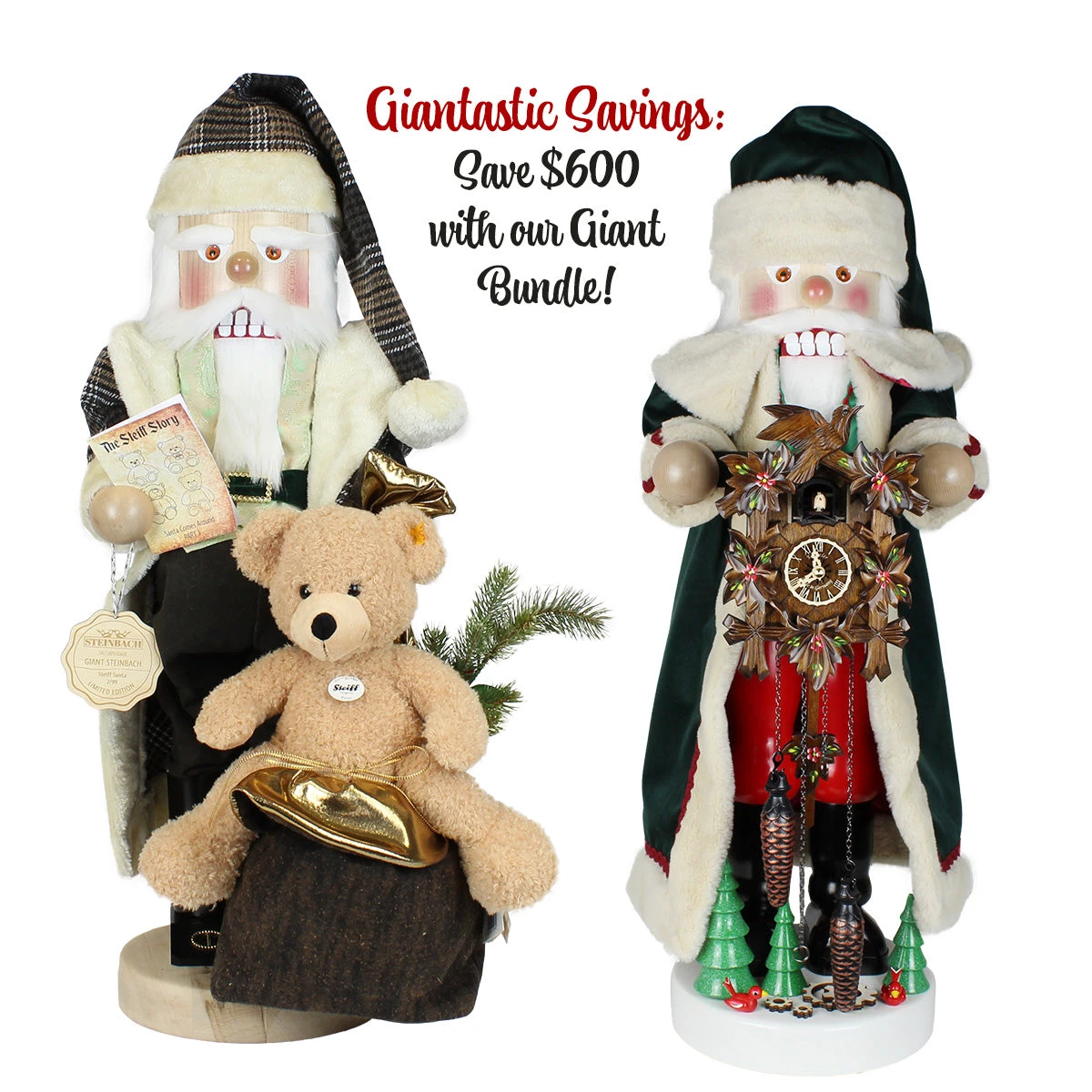 Presenting the Giant Steinbach Cuckoo Clock Santa: an over 3.2-foot-tall masterpiece that celebrates the holiday spirit, German craftsmanship, and Santaās enchanting journey through the Black Forest. This extraordinary nutcracker is not only monumental in size but also limited to just 99 pieces. It represents a collaboration between Steinbach and Engstler, uniting two icons of German tradition.