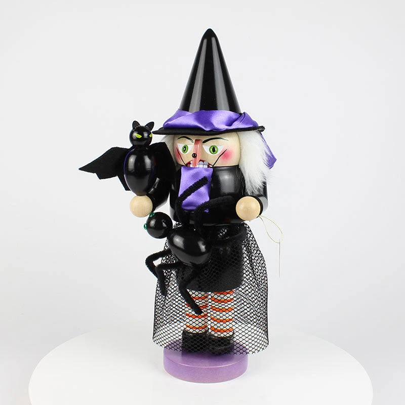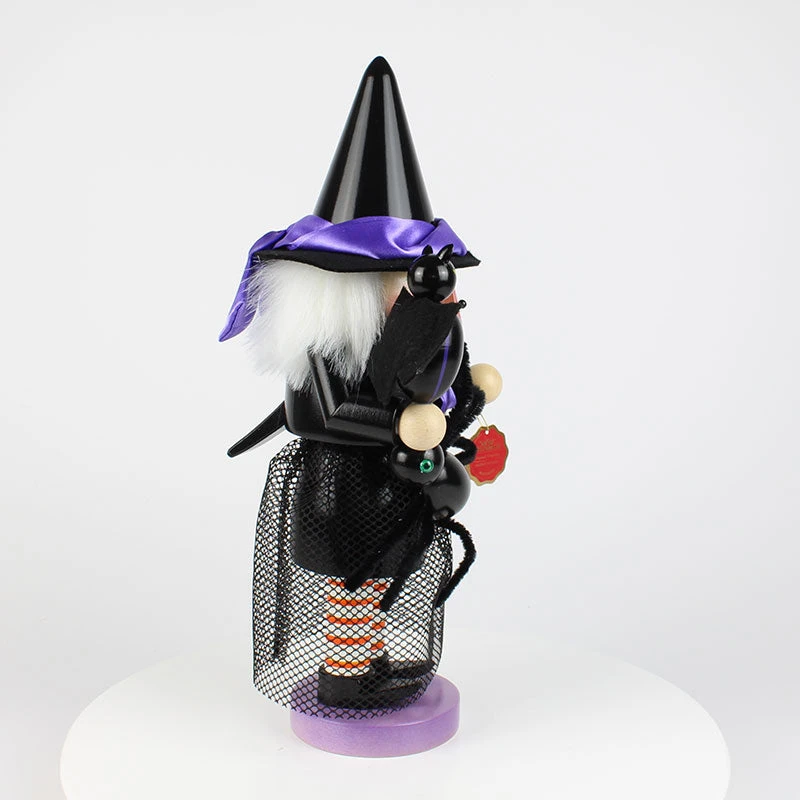 Hex Hex! As a witch today is often understood a bad-minded, ugly-looking fairy tale figure or even a legendary figure, which has magic powers. But this is not the case of our 16″ tall Steinbach witch. In her black, purple witches’ dress she comes along gracefully and attracts big and small in her ban. Immediately recognizable by the long pointed witch hat and black cloak. She holds a small bat in her arms and a spider claws her over her robe. Handmade with love and care in detail – “Made by Steinbach”