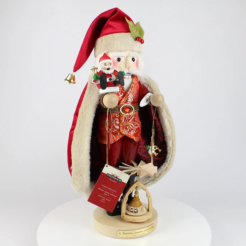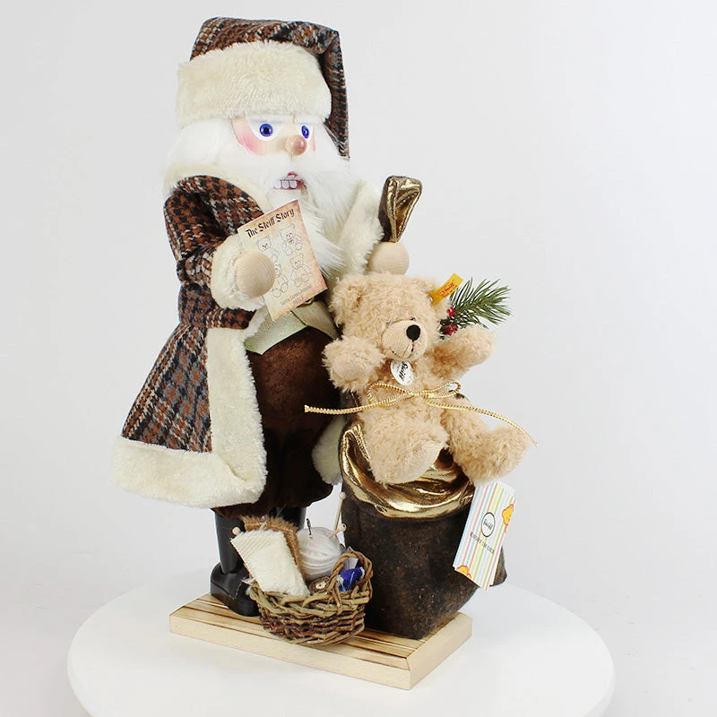 “SANTA COMES AROUND – Part 3” is the third item of the “SANTA COMES AROUND” series and impresses with its detailed implementation, extremely high-quality workmanship and carefully selected accessories. While Santa, dressed in an immaculately fashionable outfit, was made by Steinbach himself, he has a beautiful Teddy bear made by Steiff in his gift bag.