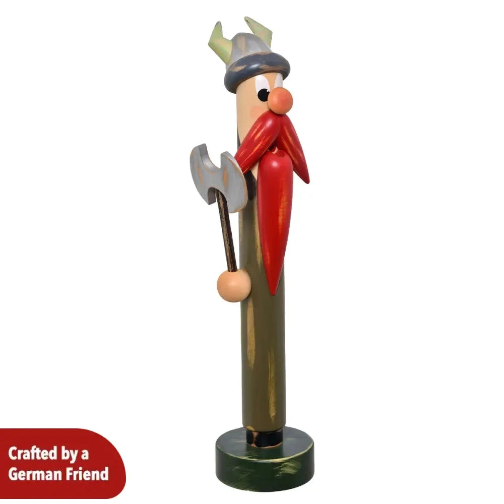 Unleash the spirit of the Norse explorers with this striking Viking incense smoker figure. Standing tall at 16 inches, this handcrafted figure captures the essence of the legendary Viking warriors. With a long, flowing red beard, a traditional horned helmet, and a battle axe at the ready, this Viking stands as a symbol of strength and adventure. His slender form and bold features add a modern, artistic twist to the classic Viking image.
