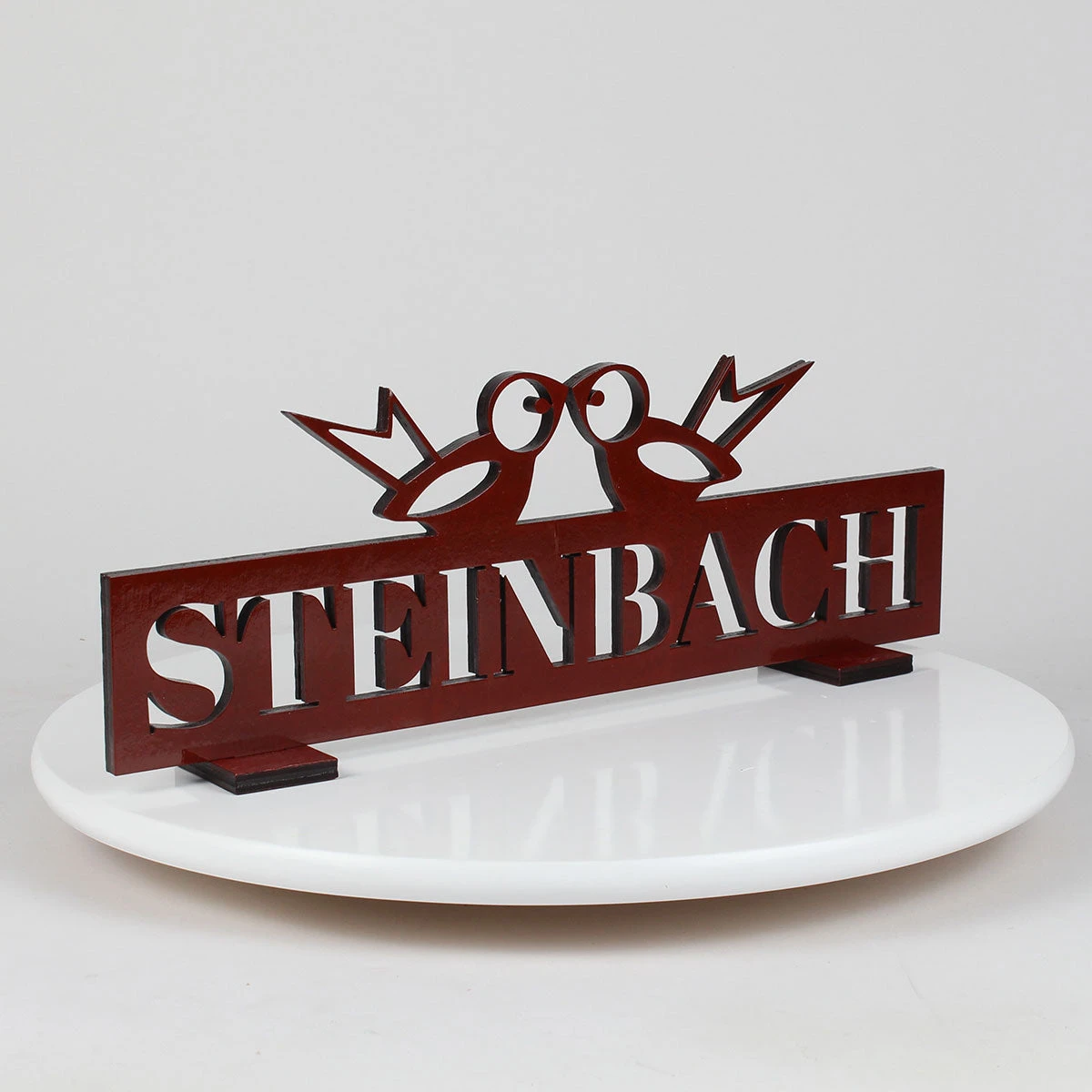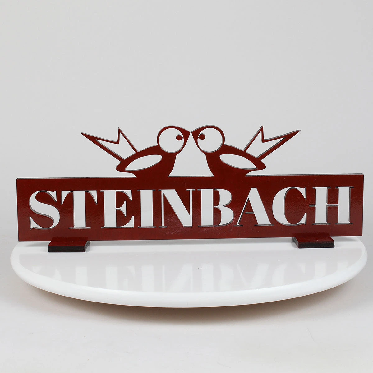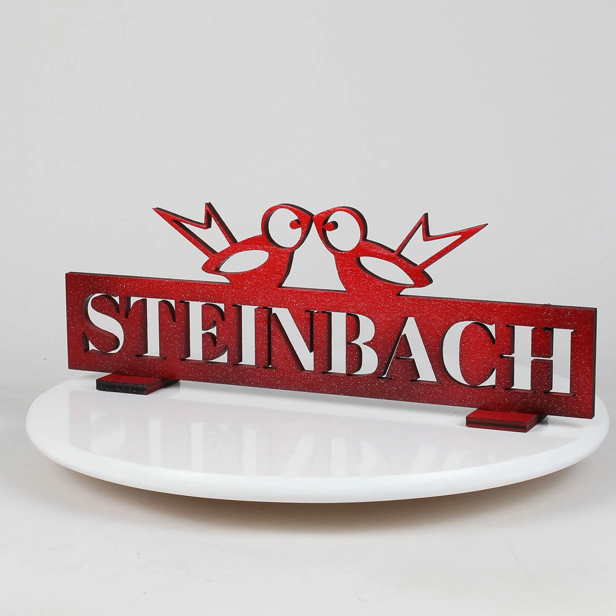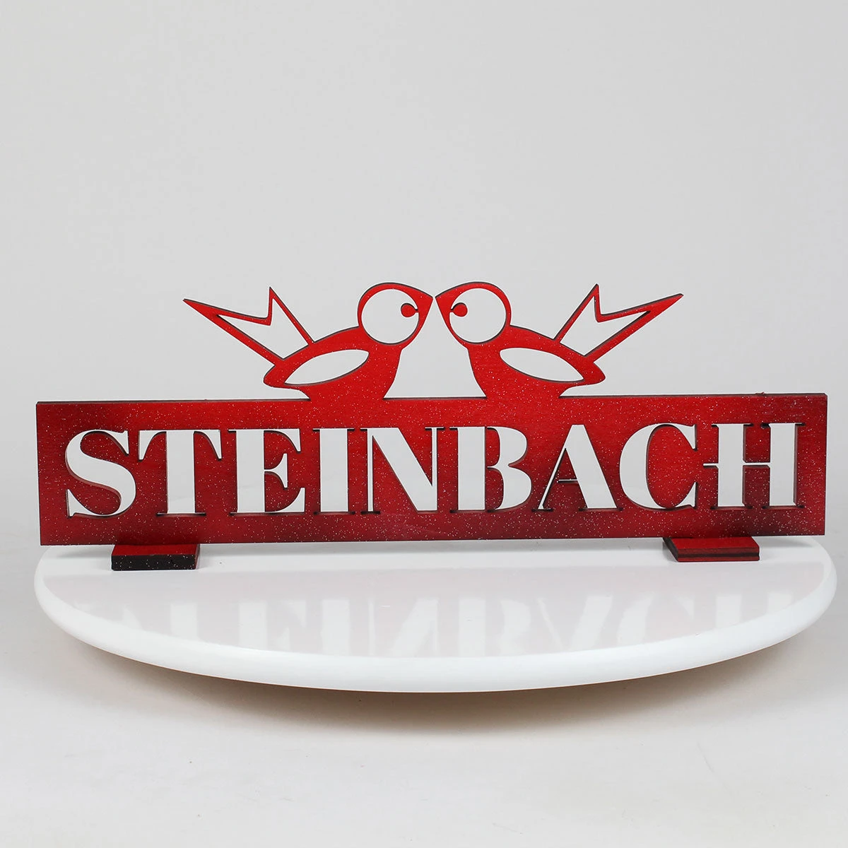Elevate your Steinbach collection with this elegant Steinbach Collector’s Display Stand, featuring the iconic Steinbach name and a charming pair of lovebirds perched above. Expertly crafted in a bold red finish with precision-cut lettering, this display adds a touch of character and sophistication to any showcase.